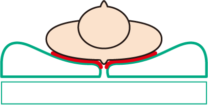 従来のたて方向だけの除圧と異なり、たて~よこ~傾きの3方向からの除圧を行います。