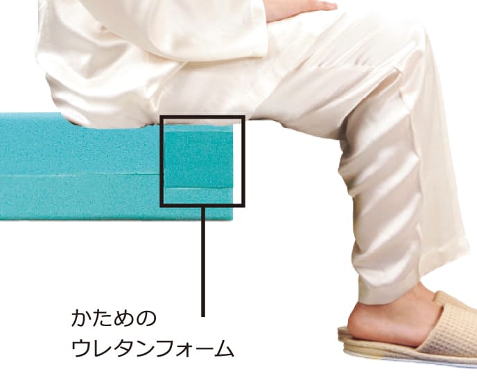 マットレスの両サイドに、よりかためのウレタンフォームを埋め込むことで、端座位が安定し、安全な立ち上がりをサポートします