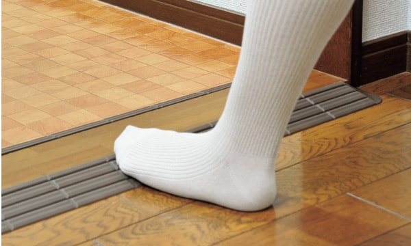 滑りにくい表面形状により、靴下や靴で歩いても安心して使用できます。