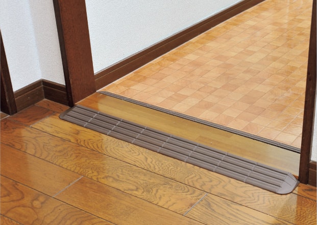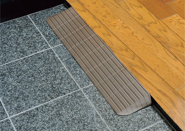 小さな段差による歩行時のつまずきの防止や、車いす走行時の負担を軽減するための低段差スロープ