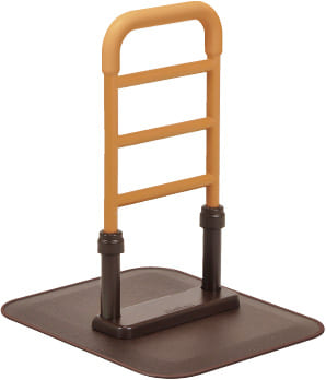 ベッドや布団での離床、ポータブルトイレなどへの移乗をサポートします。家具調ベッドやパイプベッド、電動式介護ベッドにも置くだけで使えます。
