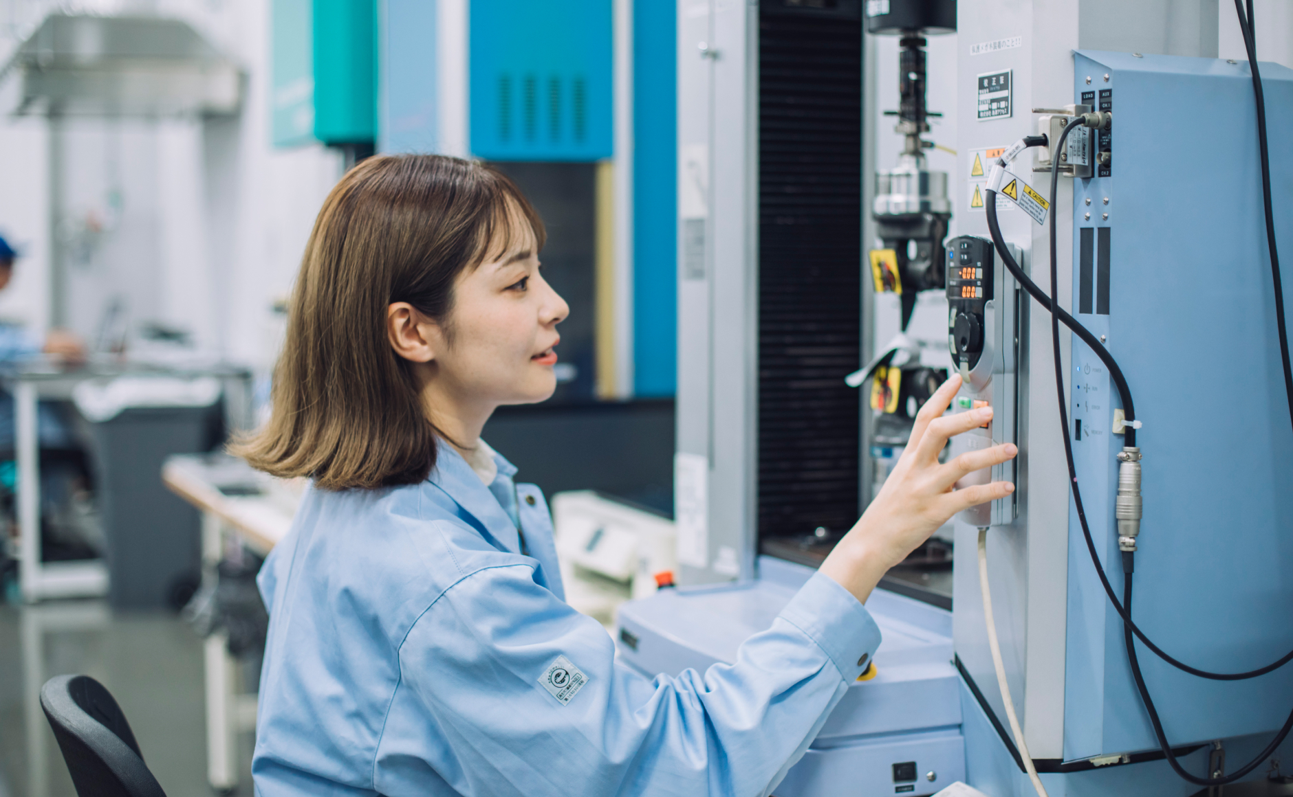 入社当初は、マーケティング部に配属されました。1日中デスクに座っていることに違和感を覚えたこともありましたが、その後設計開発部に異動し、CADなどの基礎を学んだ後、実験評価グループに配属となりました。