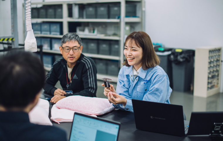 最初に任されたのは、マットレスカバーの洗濯耐久試験でした。50回以上の洗濯と乾燥を2週間以上繰り返し、ファスナーの破損や生地の縮みを確認する、地道で根気のいる作業です。しかし、大学院で培った「実験を正確に、最後までやりきる姿勢」を活かし、「任せてもらえた」という実感を持って一つひとつのデータと向き合いました。この経験を通じて、品質を担保することの重みを肌で学びました。