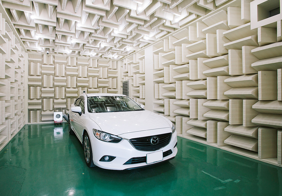 This facility is designed to block sound from external sources and to limit sound reflections and interference in the room. It is used to test parts such as undercovers and dashboard grommets. Sound-blocking performance can be evaluated by placing a vehicle in the room and measuring the amount of sound inside and outside the room when noise is generated outside the vehicle to determine the amount of sound that enters the vehicle. The sound-blocking performance of individual products and at specific vehicle locations can also be measured.