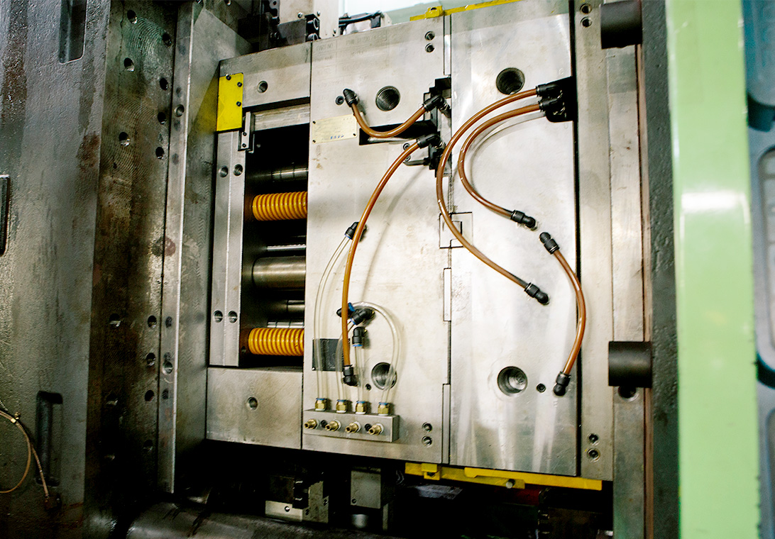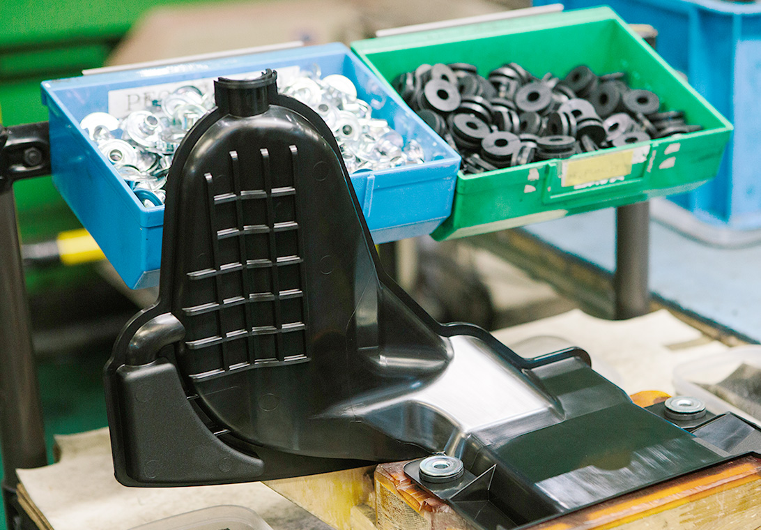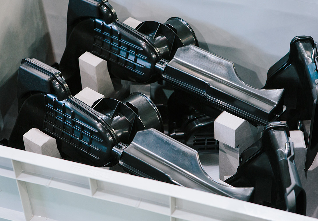 Since the parts have a hollow structure, they are injection molded one half at a time.