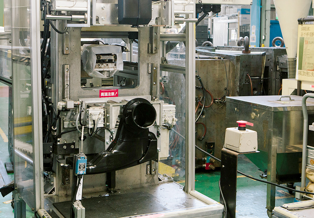 Parts are fabricated by means of injection molding. Since these parts are painted, it is important to protect the mold and manage molding conditions carefully.