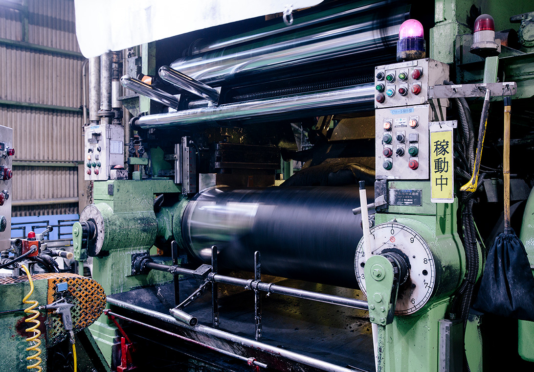 非常に技能を要する重要な作業です。ゴム材料の仕上げ工程であり、品質の良し悪しを左右するポイントの工程です。