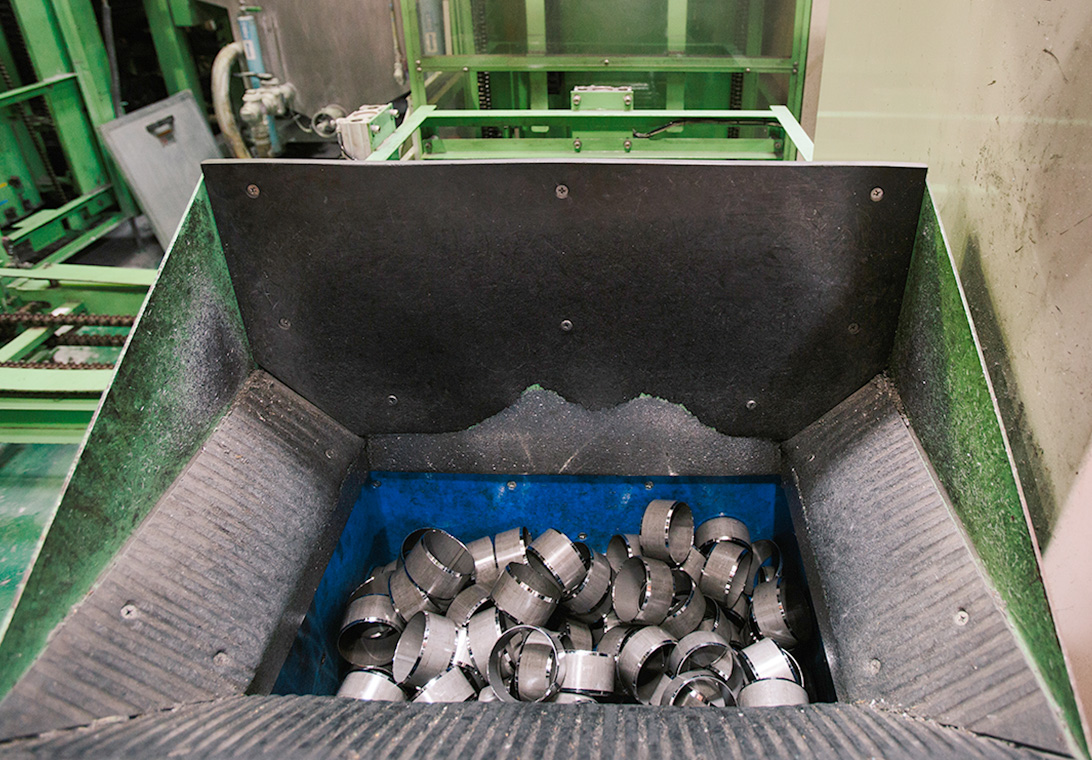 構成品である金具部品の化成処理を行う機械に投入します。