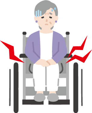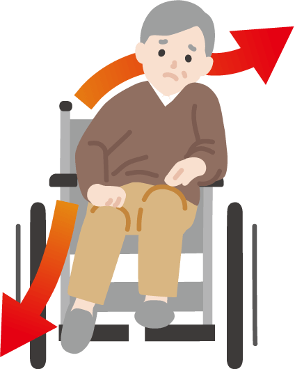 車いすの片側にもたれている人、足を片側に寄せて座っている人、仙骨座り(ずっこけ座り)の人は、お尻の痛みを取り除こうとしてこのような姿勢をとられているケースが多々あります