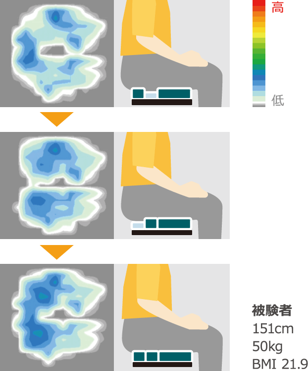 誰が座っても最適な体圧分散になるように自動で調整します