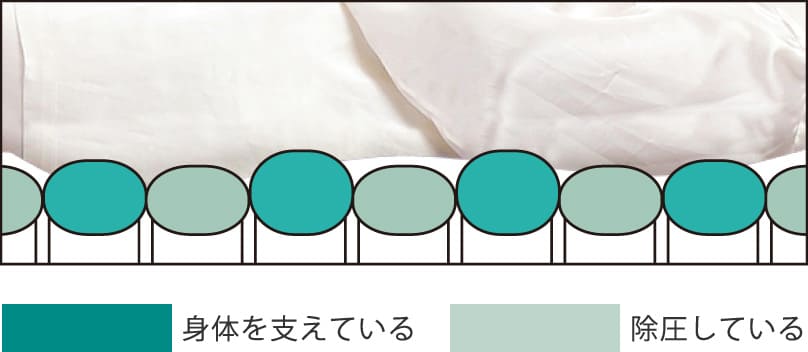 特殊なセルの形状により、身体の細かい部分までフィットし体圧を分散させます。