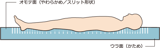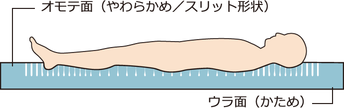 頭部・足部は小さなスリットで体をやわらかく支え、背中~大腿部は大きなスリットで体の沈み込みを抑えることで、寝心地のよさと寝返りのしやすさを両立しています