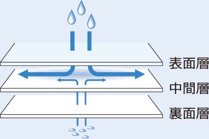 吸収した水分は表面層に戻りにくく、サラサラで快適です