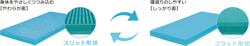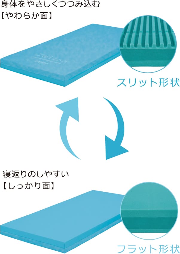マットレスの両サイドに、よりかためのウレタンフォームを埋め込むことで、端座位が安定し、安全な立ち上がりをサポートします