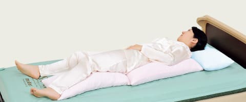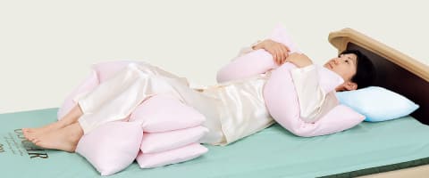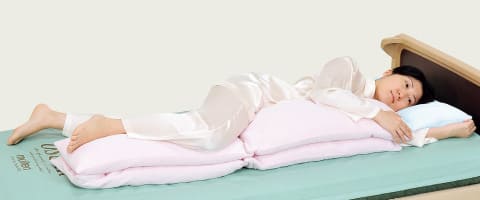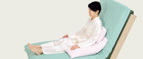 「かたいビーズのクッション」と異なりやわらかく、また「ウレタンフォームや繊維系のクッション」と異なり“もち・もち”感(やわらかさ+適度な反発力)があり、利用者様のいろいろな姿勢にフィットする「体圧分散式のクッション」です