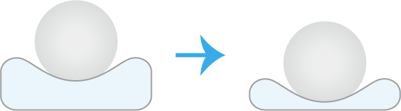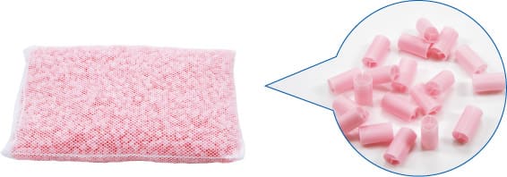 「かたいビーズまくら」と異なりやわらかく、また「ウレタンフォームや繊維系のクッション」と異なり“もち・もち”感(やわらかさ+適度な反発力)があり、利用者様のいろいろな姿勢にフィットする「体圧分散式のクッション」です。