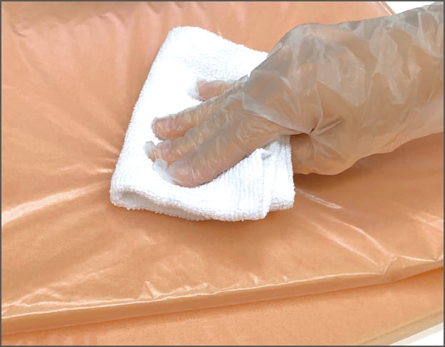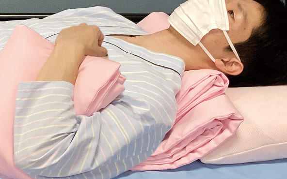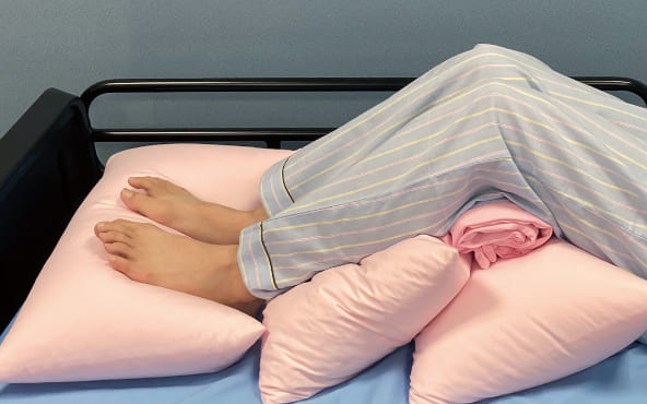 腕や足が重なる部分には緩衝材としてはさむことで、体がこすれ合うことを防ぎ、局所にかかる体圧を分散できます