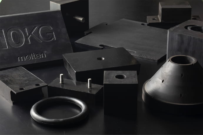 単純な形状のゴム部品をはじめ、フランジ形、リング形、放射形など様々な形状の部品を製造いたします。