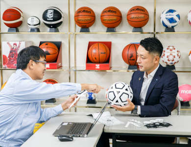 ”feel the emotion”をブランドの約束事として掲げています。プレーヤーだけでなく、スポーツに関わる人たち(コーチ、管理者、保護者)が「スポーツでしか感じられない本物の感情を引き出すために、これ以上ない最適なプロダクトやこれ以上ない最適な環境をつくり、スポーツがいつも人生のそばにある世界を実現する。」ことを目指しています。バスケの普及と強化のためのB+(ビー・プラス)や、全ての子どもたちの成長のきっかけに貢献する、組み立て式ボール「MY FOOTBALL KIT」、バスケットボールを通じて子どもと大人の体験格差の解消に取り組む「一般社団法人 Arch to Hoop 沖縄」への参画に加え、既存製品の材料を見直し、環境負荷への対策に取り組んでいます。