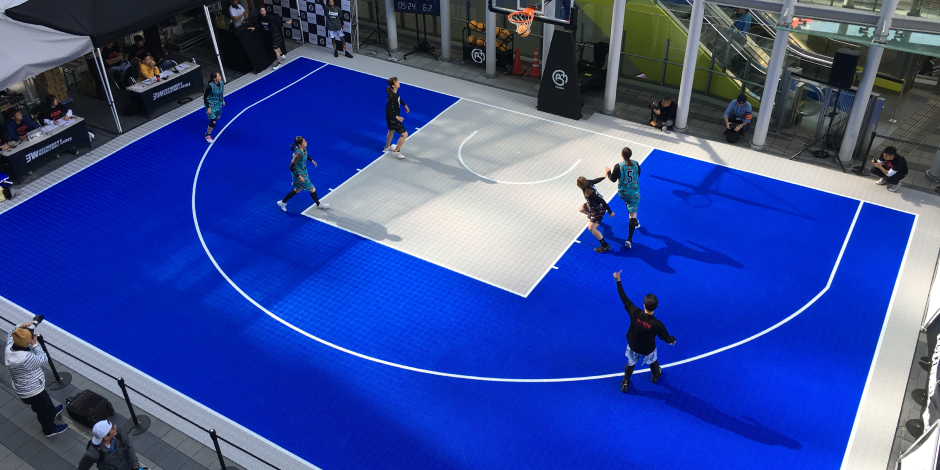 3x3のイベントをやりたいお客様にとって、これまではすべてのパーツを別々に用意しなくてはなりませんでした。しかし、ゲームユニットを利用すれば、準備や設置の手間が省けます。特に工夫した点は、コートフロアです。競合品は、表面が固くザラザラになっていて、コンクリートの上でプレーするのとさして変わりません。転倒すると擦り傷になり非常に痛い。これでは楽しくないし、気軽でもありません。そこで、グリップ性は多少犠牲にし、安全性を高めた設計に変更しました。出来上がった樹脂製のフロアには、自動車部品事業で培ったモルテンの樹脂成形技術が生かされています。