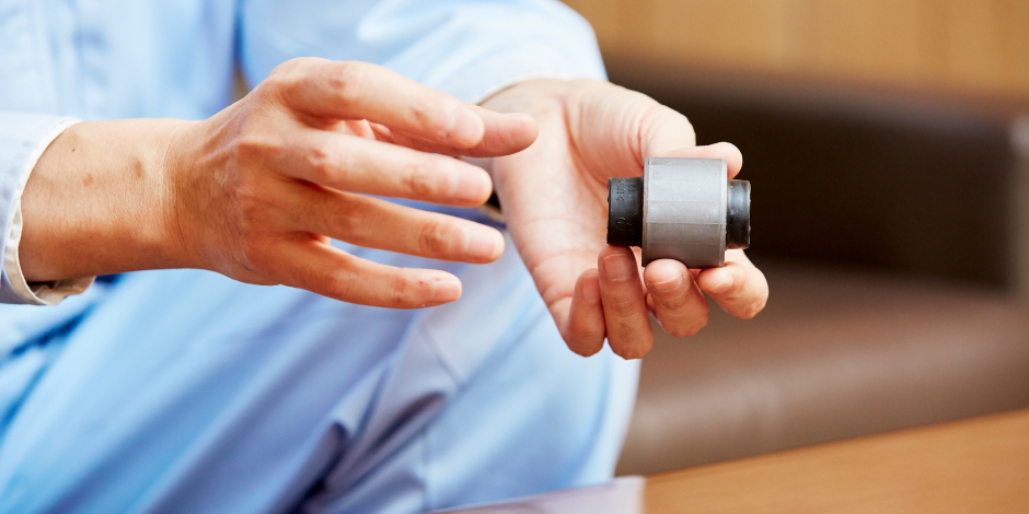お客様の次世代の車の開発に向け、共同開発契約を締結し、いくつかのサスペンション関連の足回り部品の開発を進めていました。その開発過程で、ロアアームブッシュが、我々の想定以上に、車の走る・曲がる・止まるに大きく影響する重要な部品であることがわかりました。我々は性能や仕様を部品単体で考えがちで、それは必ずしも間違いではありません。お客様の要求する部品の仕様を実現することが必要条件だからです。しかし今回は、車の動きに部品がどう寄与するのかを考えながら開発を進めたいと考え、お客様とコミュニケーションをとる中で、ロアアームブッシュの大事さがわかってきました。お客様の中では認識されていたことでしょうが、我々は全く知らない。こちらの勉強不足でした。そこで、ロアアームブッシュも並行して開発を進めることになったんです。