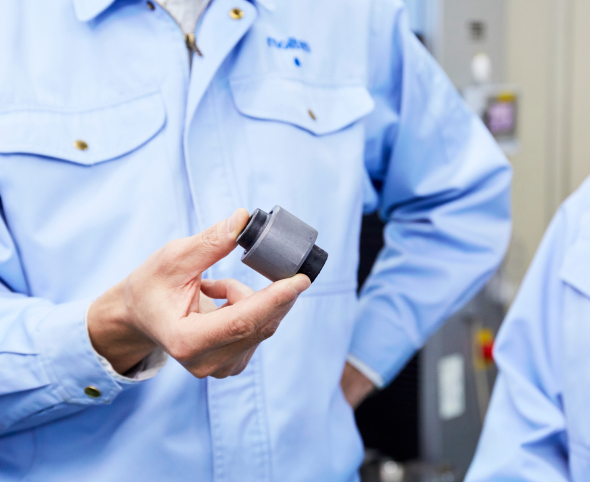 まさに大逆転。モルテンの自動車部品事業の歴史の中で、ロアアームブッシュほど劇的な受注は初めてではないでしょうか。一旦は他社への発注が決まったものを、お客様のキーパーソンであるA氏の「モルテンの部品でないと狙った性能が出せない。何とかやってくれ」という情熱あふれる言葉がきっかけで一転し、モルテンが受注しました。