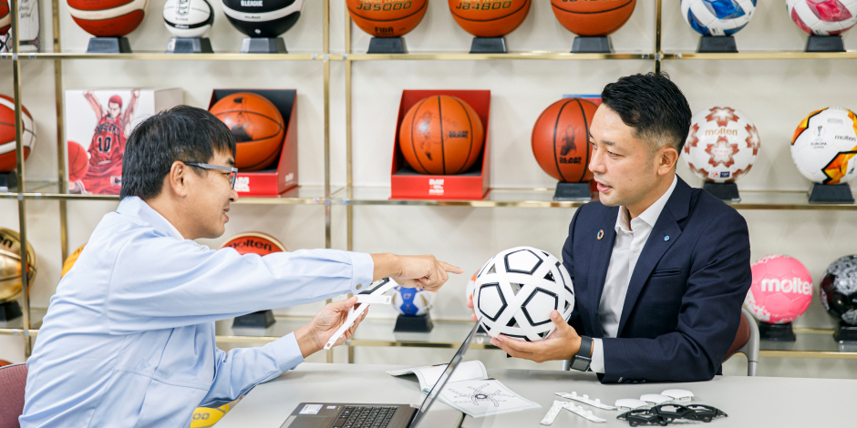 私はもともとプロのサッカー選手を目指していて、大学までプレーをしていました。その夢が叶うことはありませんでしたが、サッカーを通じて、「目標達成に向けた努力」「仲間、指導者、親への感謝」など、様々なことを学びました。サッカーが私を成長させてくれたと思っています。しかし、世界にはサッカーがしたくてもできない子どもたち、満足のいく環境で教育を受けられない子どもたちがたくさんいます。そんな子どもたちに届けたいとの思いから企画・開発したのがMY FOOTBALL KITです。ただのサッカーボールではありません。自分で組み立てるサッカーボールです。子どもたちのサッカーへの興味、関心をかきたてるだけでなく、自ら組み立てることで空間認識能力を鍛えるという教育効果を狙っています。また、環境問題への配慮から、素材には再生ポリプロピレンを約40%使用しています。こだわりはデザインと蹴り心地。実にカッコいいでしょ。さらに蹴った感じはまさにサッカーボール。モルテンはボールメーカーなので、ボールを蹴った時の蹴り心地を残すことでサッカーの楽しさを伝え、デザインも「おっ!」と思われるカッコよさ、蹴りたくなるワクワク感を表現してます。私たちはMY FOOTBALL KITを通して、多くの子どもたちの成長のきっかけに貢献したいと考えています。