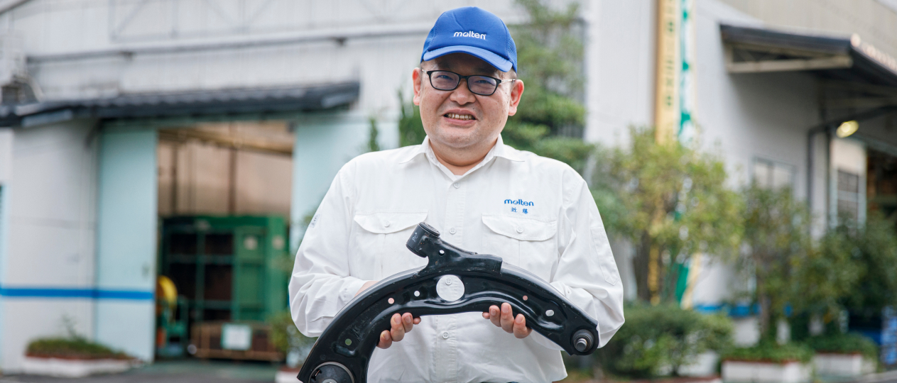 我々が提供しているのはラバーブッシュといって、サスペンションの一部として使用される部品です。人間でいうと関節に当たる部分ですね。タイヤと車体を車軸、サスペンションでつなぐのですが、そのつなぎ目のゴム製品がラバーブッシュです。