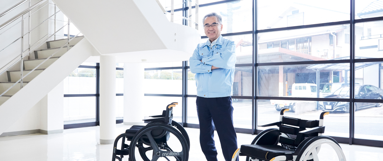 車椅子というと、足の不自由な人が乗る特別なものというイメージがあります。しかし目の悪い人は普通に眼鏡をかけますが、これを特別だと思う人はいませんよね。メガネというファッションの一つにもなっています。我々が目指したのはまさにそれで、車椅子ではなくクルマイス。「いいね、それ」と言ってもらえて、当たり前の日常の風景になるようなものにしたかった。だから、Wheeliy(ウィーリィ)というネーミングにもこだわりました。車輪を示すWheelに、英語の愛称によくあるiyをつけて、「クルマイス」らしさを親しみやすく表現しています。また、iyには「私とあなた」という意味もあって、クルマイスに関わるのは第三者ではない、私とあなたなんですよ、と。例えば、Wheeliyの黄色い部分があるでしょ。これは、ここを持ってください、ここで畳んでくださいということを言わなくてもわかるようにしています。