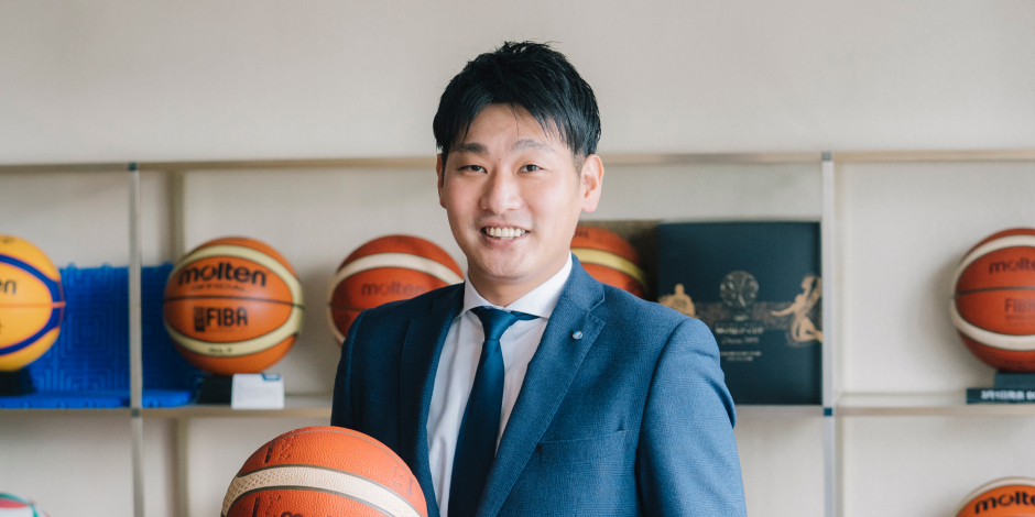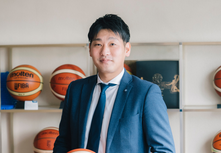 モルテンを志望したきっかけは、大学生の頃に、小学生以下のバスケットボール競技「ミニバス」の指導をしていた時に、モルテンの営業の方に出逢ったことでした。現在、私の仕事もスポーツ用品事業の営業職で、主にバスケットボールやシューティングマシンの営業をしています。